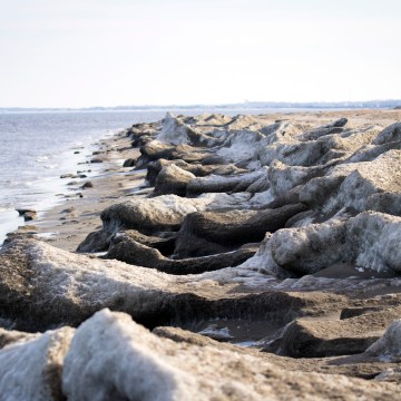 Ice blocks marooned on the beach