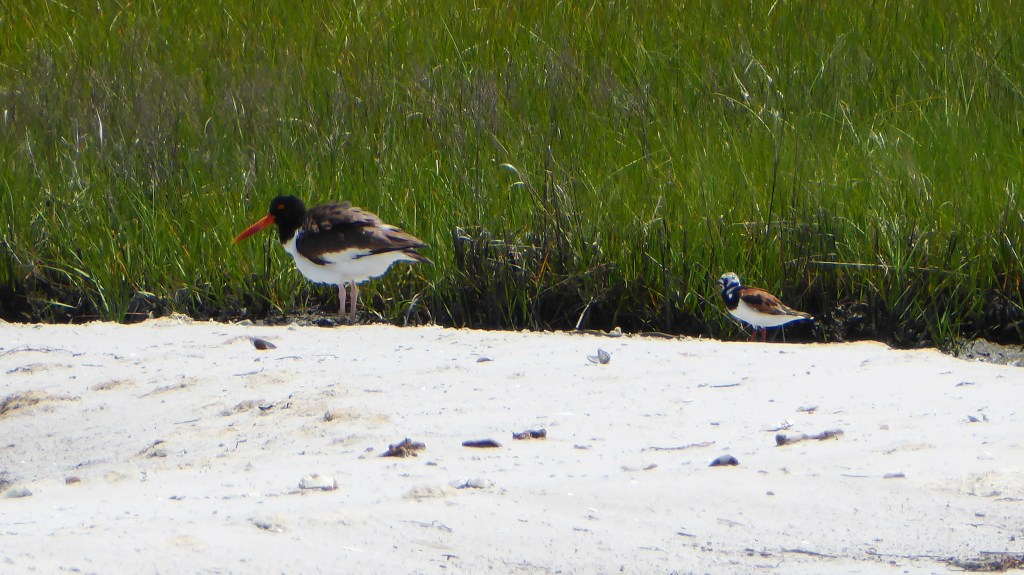 Another sandy beach not only had a few ruddy turnstones but a pair of American oystercatchers. The oystercatchers didn’t fly when we landed and appeared upset at our presence. Our guess is there was a nest nearby. We kept our distance, using a telephoto lens for pictures, and tried not to disturb the birds.