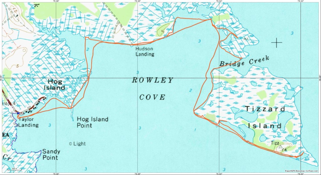As we rounded Hog Island the wind and waves picked up making a difficult paddle to the boat ramp. Our trip total was nearly eight miles. Numerous opportunities for further exploration exist in this area, including kayaking all the way around Tizzard Island. But all in all, it was a good way to spend Memorial Day.
