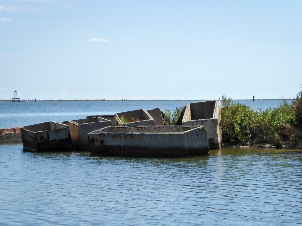 Just north of the fertilizer plant we put ashore to look around (waypoint 173 on the map below). Paddling a little further north we located a narrow spit of sand allowing us to pull our kayaks across into the Bay. This is the only way to paddle further along the shoreline as the inside gut we were in eventually dead ends. (See Waypoint 174 on the map below)