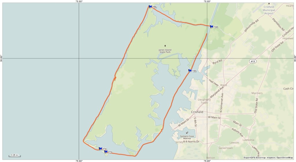 On September 25th, 2019 we paddled one of our favorite Maryland State Parks: Janes Island near Crisfield, Maryland. Janes Island Island State Park is blessed by beautiful (and deserted) sandy beaches, plentiful shorebirds and lots of working fishing boats providing a flavor of Chesapeake Bay industry.