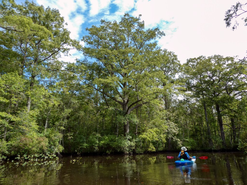 Nassawango Creek starting at Red House Road takes one through the cypress swamp where the spring green on Cypress Trees is spectacular. Pocomoke River and Nassawango Creek.